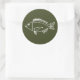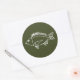 Pegatina Redonda Pescado negro de brea en blanco en verde caqui