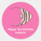 Pegatina Redonda Pescado rosado lindo Feliz cumpleaños