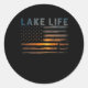 Pegatina Redonda Pescador de Lake Life Sunset Bandera Estadounidens