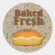 Palabras frescas al horno con un delicioso pastel debajo de las palabras, contra un fondo vintage de utensilios de cocina
