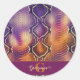 Pegatina Redonda Piel de serpiente morada y dorada monogramada