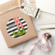 Las piernas de elfo con pesas rayadas y botas verdes con rayas blancas y negras y puntos dorados incluyen tu saludo personal sobre estos Navidades pegatinas redondos. COINCIDIENDO con los artículos de nuestra tienda.