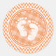 Pegatina Redonda Pies de bebé; Naranja y cheurón blanco