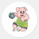Pegatina Redonda Pig como jugador de balonmano con balonmano