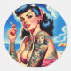 Pegatina Redonda Pin de verano de Bikini retro tatuado