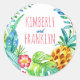 Pegatina Redonda piña manzanas palmeras tropicales boda playa