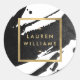 Pinceladas de pintura negra y tinta crean un fondo abstracto en este diseño de pegatina personalizada. Su nombre o el nombre de su empresa se muestra en una caja de oro falso para una estética moderna. Estas pegatinas son ideales para sellar sobres o paquetes, personalice el texto para decir 'gracias' para los favores de las fiestas de los invitados, utilícelos para etiquetas de productos o velas, o para personalizar sus suministros de oficina o escolares. Arte y diseño © 1201AM Design Studio | www.1201am.com