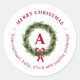 Pegatina Redonda Pine Wreath Monograma Feliz Navidad