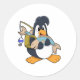 Pegatina Redonda Pingüino como anglopardo con pescado