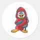 Pegatina Redonda Pingüino como bombero con extintor