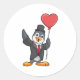 Pegatina Redonda Pingüino como novio con globo de corazón