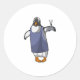 Pegatina Redonda Pingüino como peluquero con tijeras