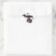 Pegatina Redonda Pingüino de helicóptero volador con maleta