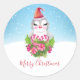 Pegatina Redonda Pingüino de Navidades burdos en Santa Hat