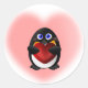 Pegatina Redonda Pingüino el día de San Valentín con corazón