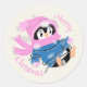 Pegatina Redonda Pingüino enredado en luces pegatinas navideñas