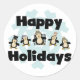 Pegatina Redonda Pingüino Felices Fiestas, camisetas y regalos