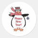 Pegatina Redonda Pingüino Feliz Año Nuevo
