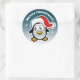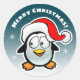 Pegatina Redonda Pingüino Genial Con Gorro De Santa