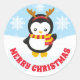 Pegatina Redonda Pingüino infantil en hormigas Feliz Navidad