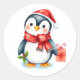 Pegatina Redonda Pingüino Navidades festivos adorables