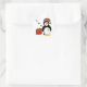 Un pingüino personalizado con sombrero de santa, de pie junto a un gran regalo envuelto en rojo. 'Ho, Ho, Ho' es el mensaje alegre.