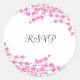 Diseño elegante con un fondo blanco con delicadas ramas rosas llenas de flores rosadas bonitos. RSVP puede cambiarse a otra cosa si así lo desea.