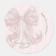 Pegatina Redonda Pink Bow and Stripes Baby Shower