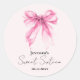 Pegatina Redonda Pink Bow Coquette Script Sweet 16 Party Blush