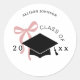 Seal your graduation mail with style using this personalized Class of 2026 sticker, the perfect finishing touch for invitations, announcements, and thank you cards. Designed with a clean, modern aesthetic, this round sticker features a bold graduation cap accented with a soft pink bow and elegant “Class of” detail, creating a look that is both timeless and celebratory. The addition of your custom name adds a meaningful, personal element that ties your entire stationery suite together.