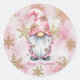 Pegatina Redonda Pink Christmas Gnome Gold Snowflakes