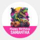 Pegatina Redonda PINK Dino-Mite MONSTER TRUCK Fiesta de cumpleaños