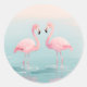 Pegatina Redonda Pink Flamingo Pair Watercolor Serenity