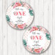 Pegatina Redonda Pink Floral 1st Birthday