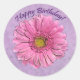 Pegatina Redonda Pink Gerbera Feliz Cumpleaños sticker
