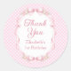 Pegatina Redonda Pink Gingham Bow First Birthday Thank You Sticker