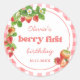 Pegatina de Ronda Clásica Pink Gingham Strawberry Birthday