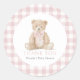 Pegatina Redonda Pink Gingham Teddy Bear Baby Shower