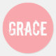 Pegatina redondo clásico rosado con texto de gracia blanca para letras hermosas e inspiradores, regalos dulces.