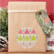 Pink & green abstract Christmas trees with snowflakes on round stickers. Perfect gift for Christmas or stocking stuffer.