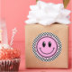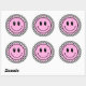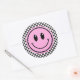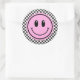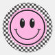 Pegatina Redonda Pink Happy Face Checker Kids Cumpleaños