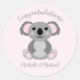 Pegatina Redonda Pink Koala Bear Baby Shower