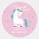 Featuring a pink unicorn with pastel stars and confetti, these stickers are perfect for party favors and decor.