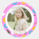 Pegatina Redonda pink name birthday modern floral romantic Sticker