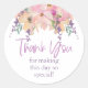 Pegatina Redonda Pink Purple Floral Gracias Boda Cumpleaños