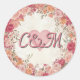 Pegatina Redonda Pink & Red Romantic Spring Floral Monogram Wedding