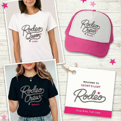 This sticker features the signature Rodeo Crew rope-style lettering in a western-inspired design that feels bold, playful, and easy to recognize. The minimalist color palette of black, white, and hot pink makes it versatile and perfect for bachelorette weekends, last ride parties, and bridal celebrations.