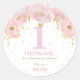 Pegatina Redonda Pink Rubor Floral Gold Princesa Chica de cumpleaño