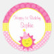 Pegatina Redonda Pink Sunshine Polka Dot 1Cumpleaños Personalizado