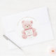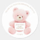 Pegatina redonda Baby Shower Chica De Oso De Teddy Rosa. Diseñado con una acuarela de ilustracion de oso de peluche. Artículos coincidentes en nuestra tienda Diseños de Fiestas de cava.